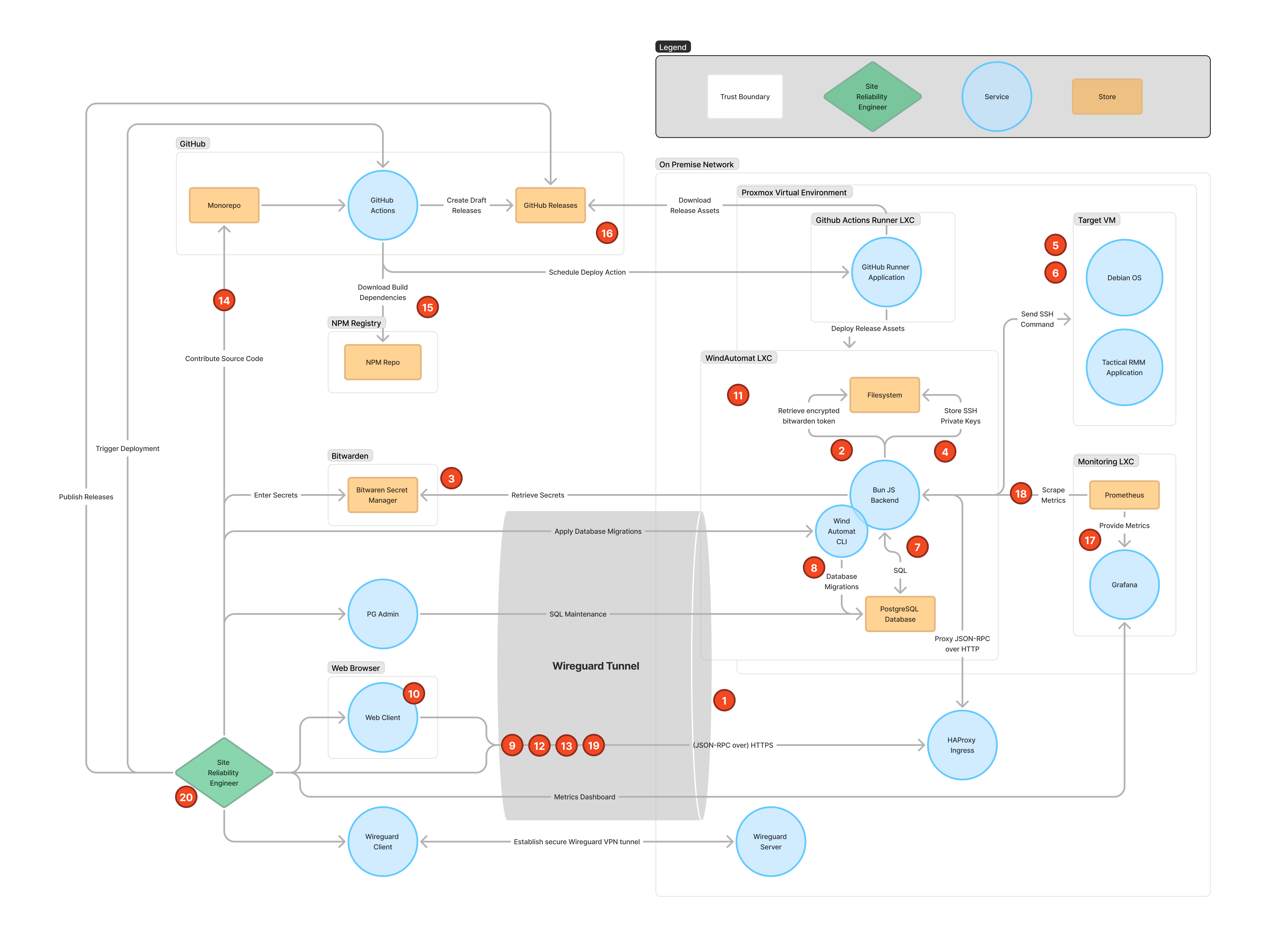 The WindAutomat application is deployed in an unprivliged LXC with processes running as non root user to reduce the attack surface. |